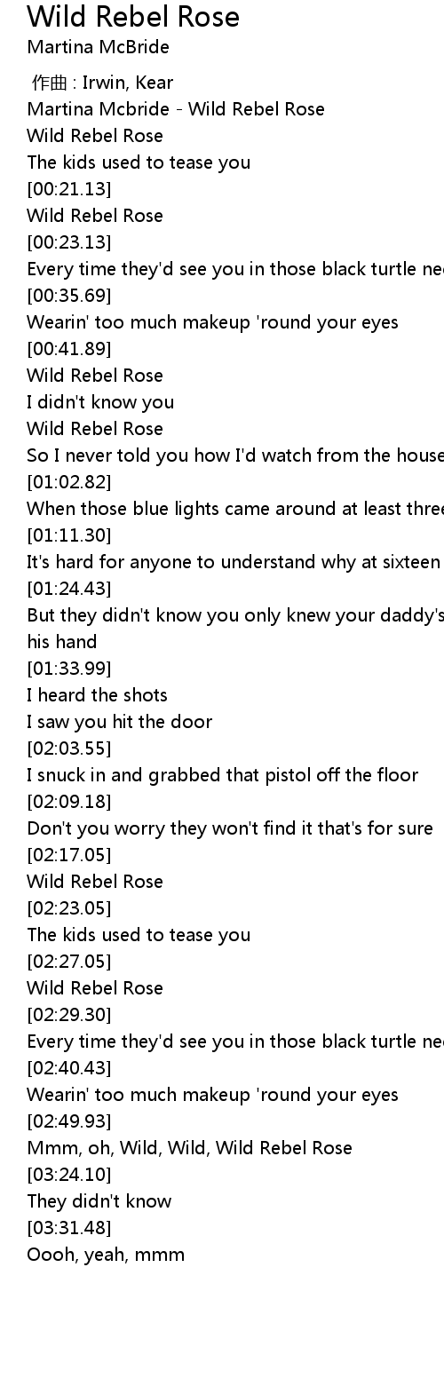 | [00:00.57] | Martina Mcbride Wild Rebel Rose |