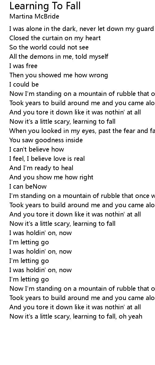 Now it's a little scary, learning to fall, oh yeah |