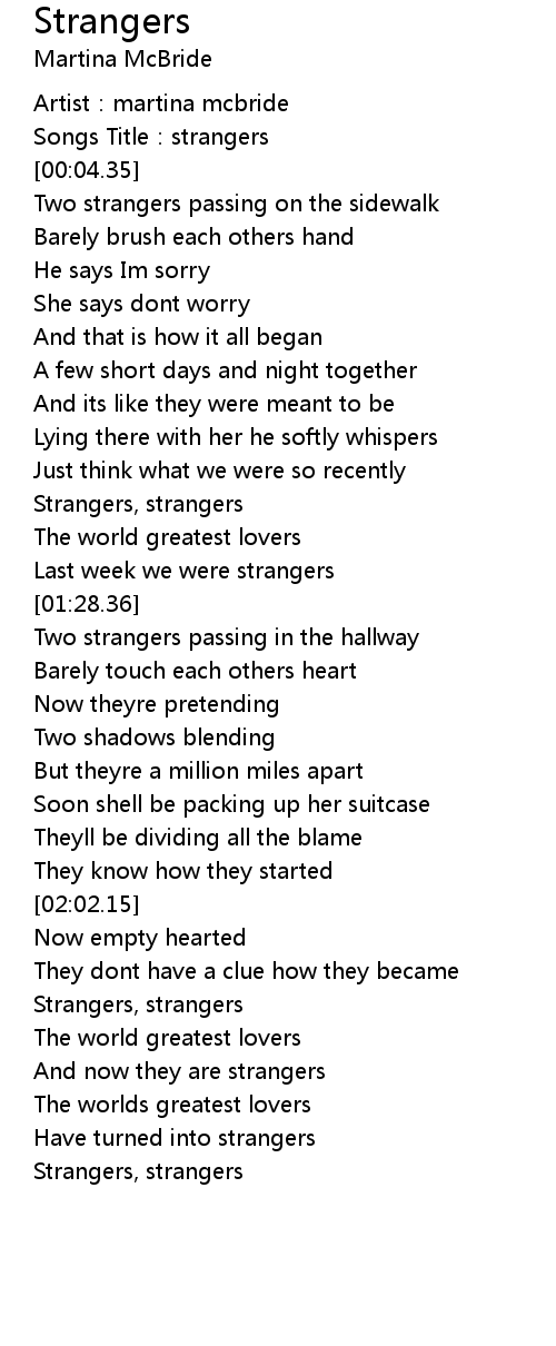 | [00:11.19] | Two strangers passing on the sidewalk |