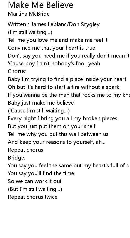 | Baby just make me believe | |