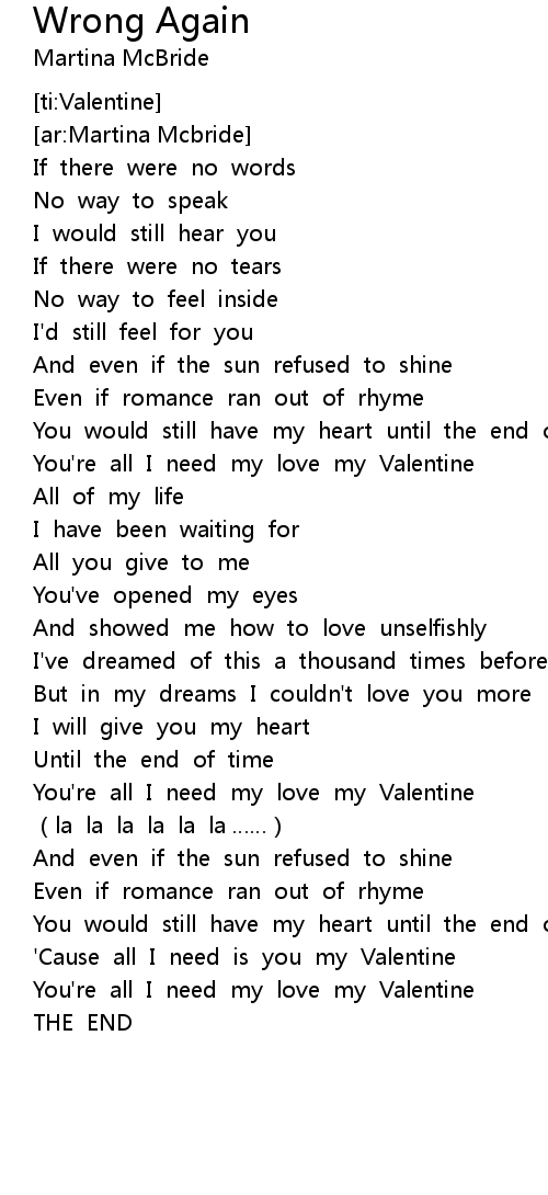| [00:53.41] | You're all I need my love my Valentine |