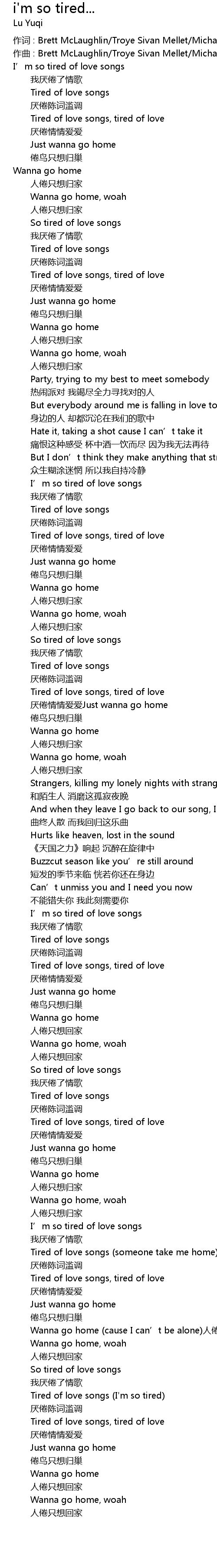 | 歌曲 | i'm so tired... |