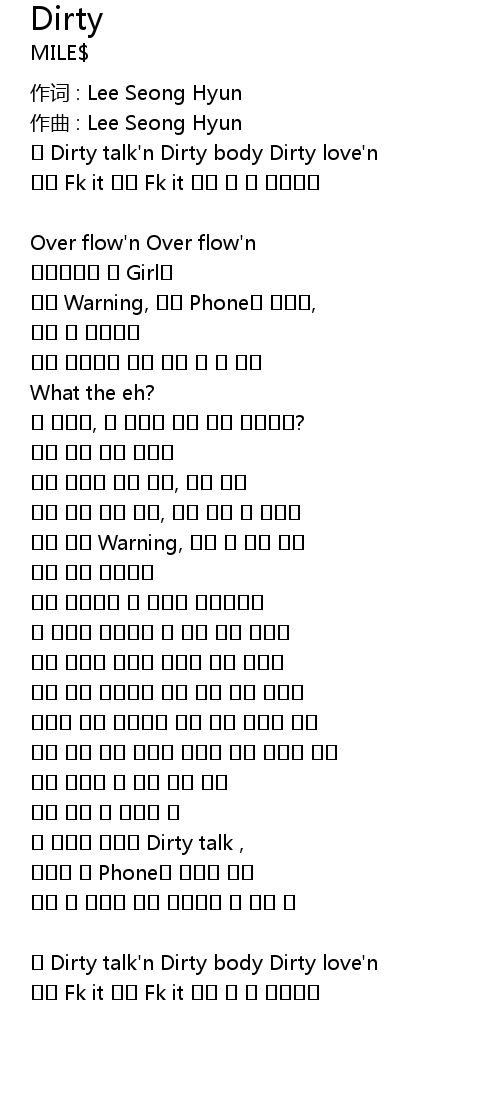 또 Dirty talk'n Dirty body Dirty love'n |