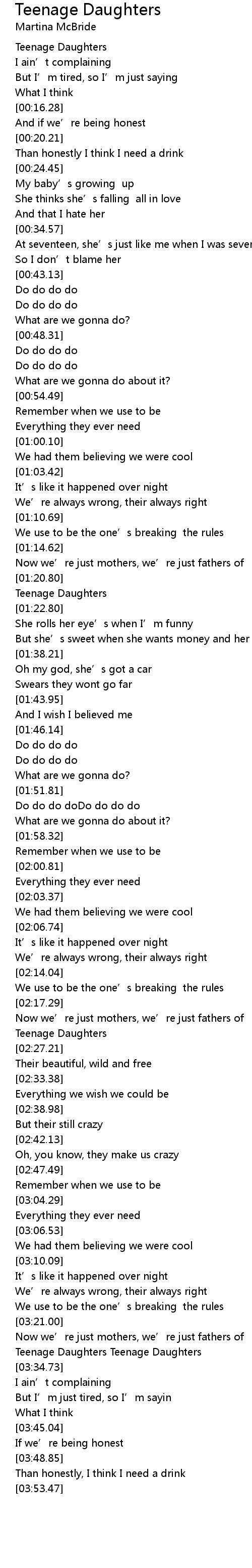 | [03:27.68] | Teenage Daughters Teenage Daughters |