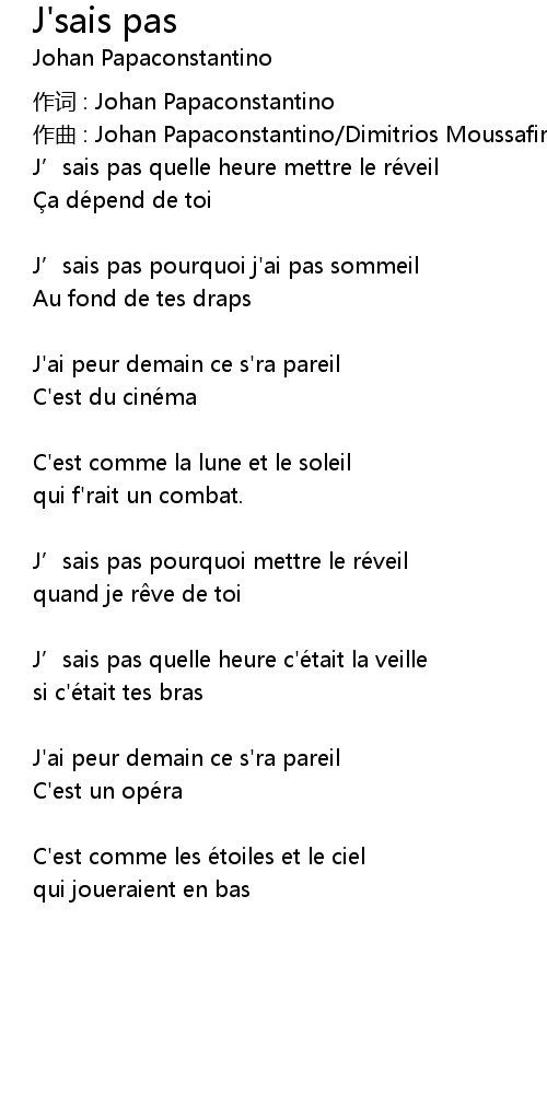 | 歌曲 | J'sais pas |
