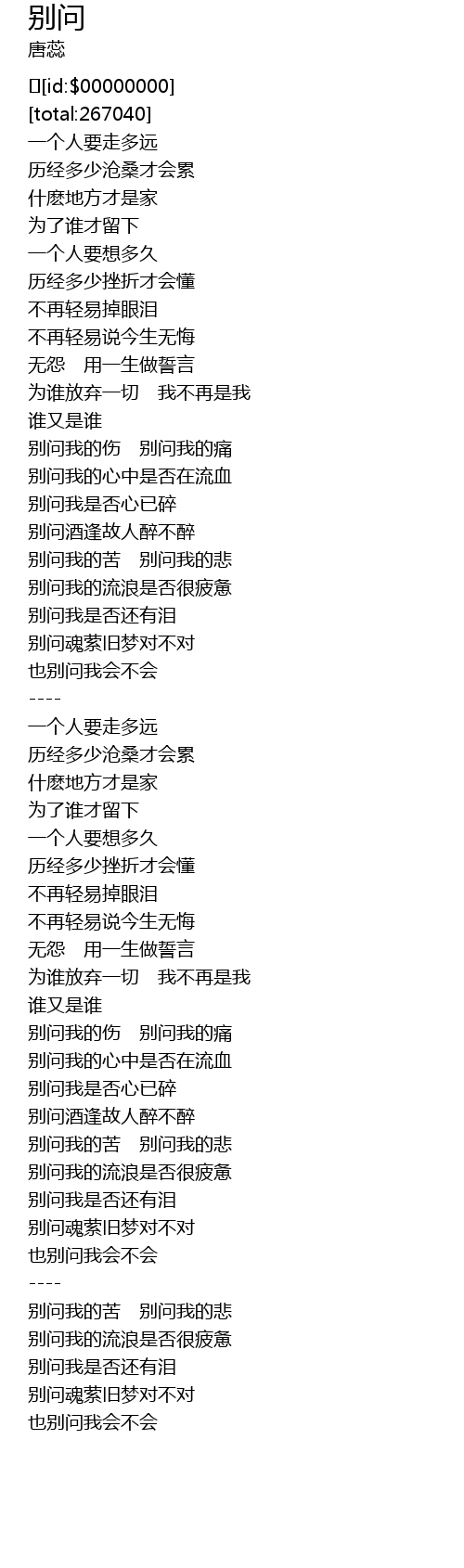 | [03:37.902] | bie wen wo de ku bie wen wo de bei |
