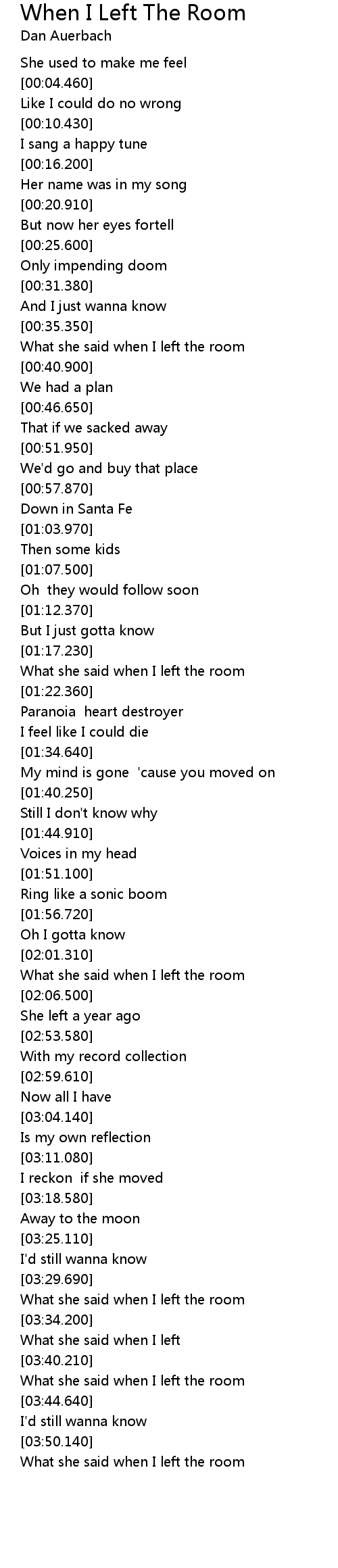 What she said when I left the room |