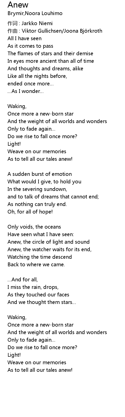 | 歌曲 | Anew |