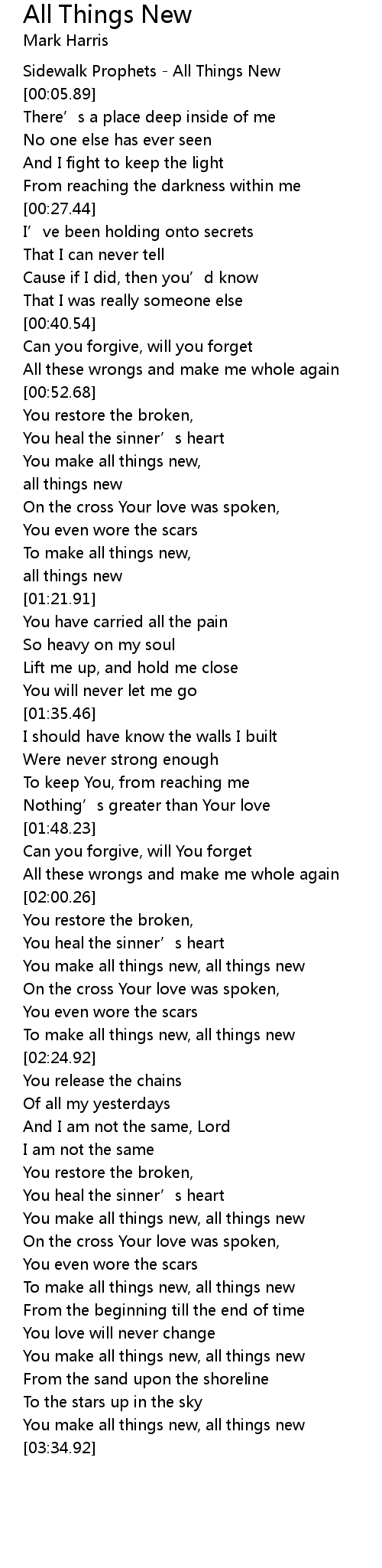 | [00:01.12] | Sidewalk Prophets - All Things New |