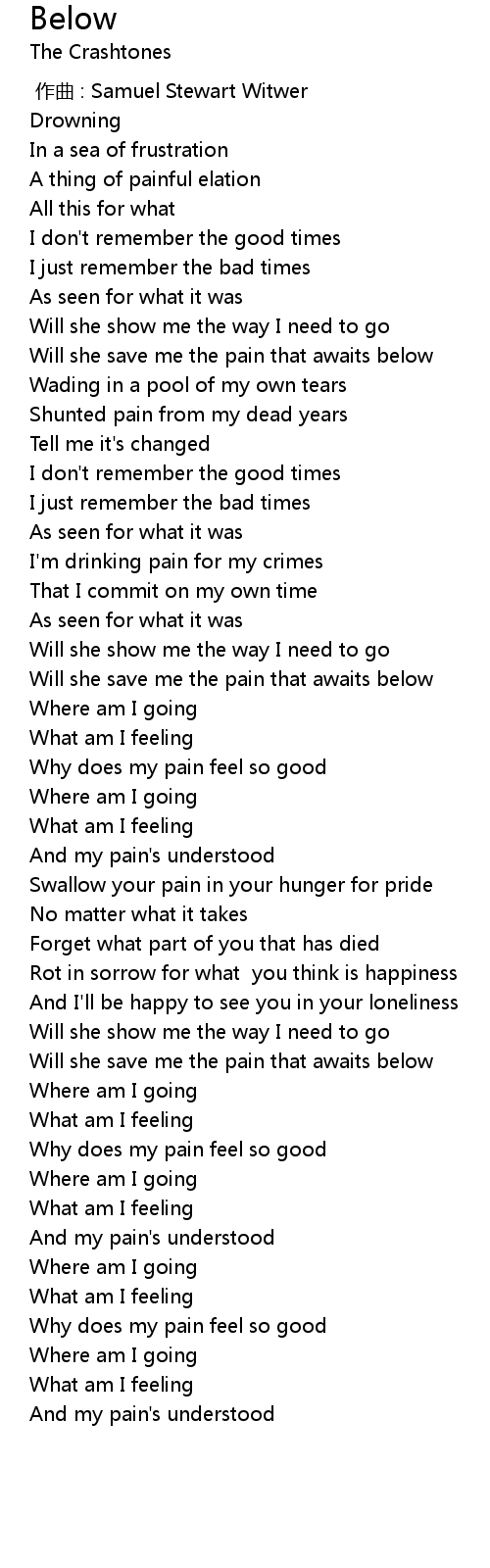 | [02:11.94] | Why does my pain feel so good |