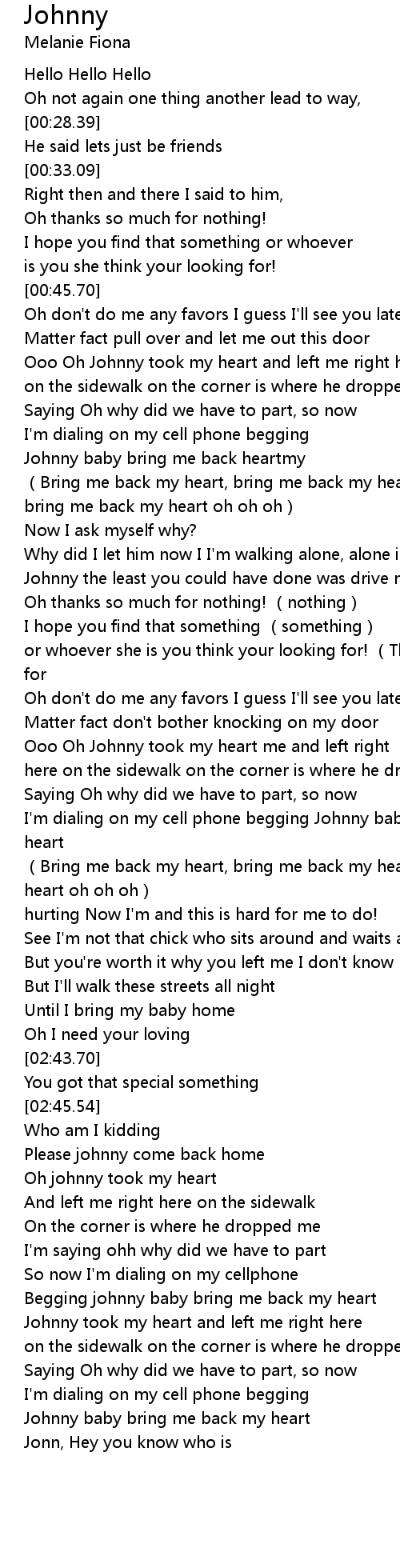 | [03:06.02] | Begging johnny baby bring me back my heart |