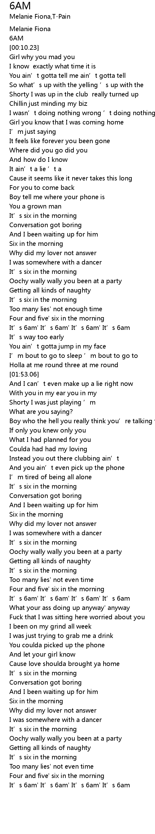 | [03:52.01] | It' s 6am' It' s 6am' It' s 6am' It' s 6am |