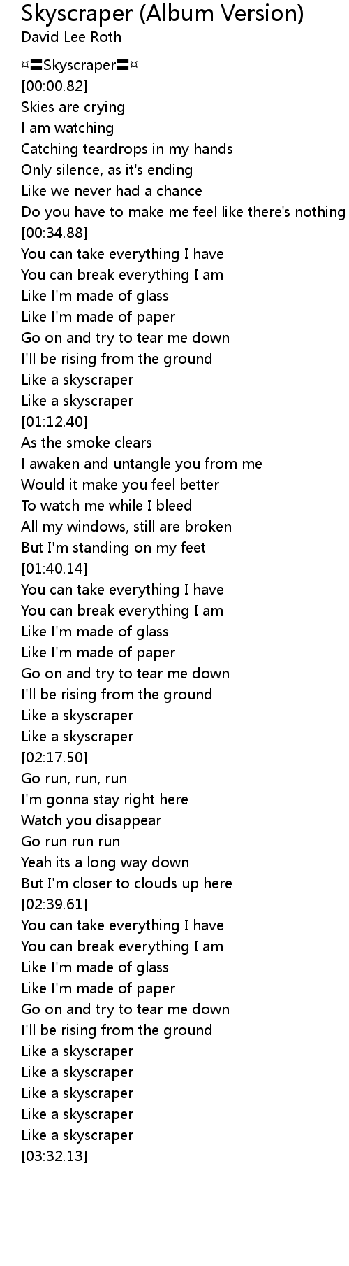 | [00:27.73] | Do you have to make me feel like there' s nothing left of me? |