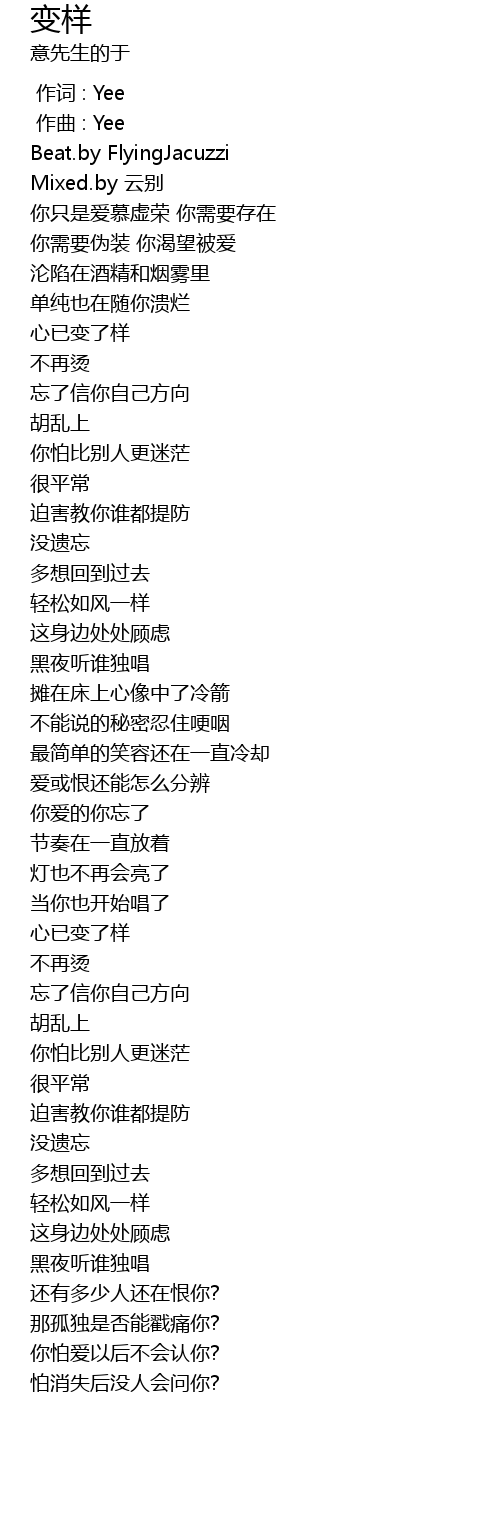 | [00:58.421] | xīn yǐ biàn le yàng |