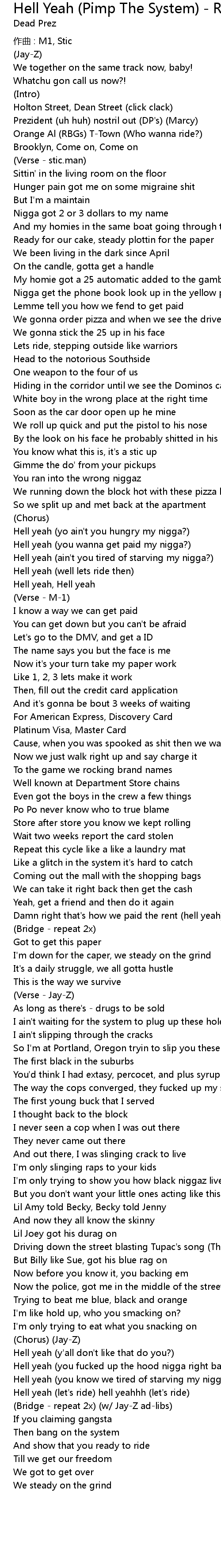 | Bridge repeat 2x w JayZ adlibs | |