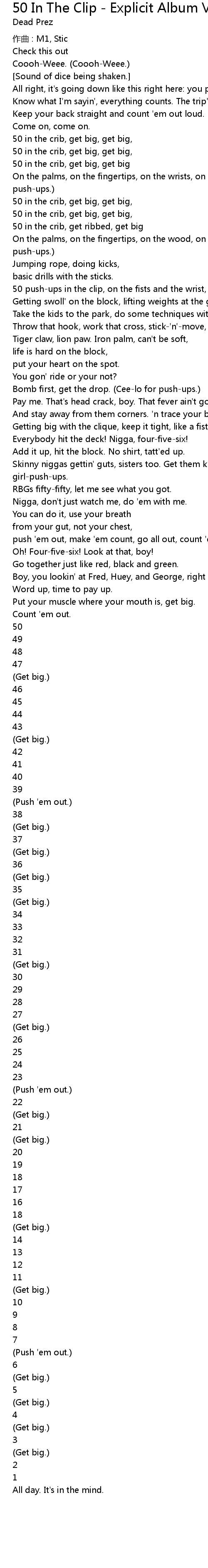 | 歌曲 | 50 In The Clip - Explicit Album Version |