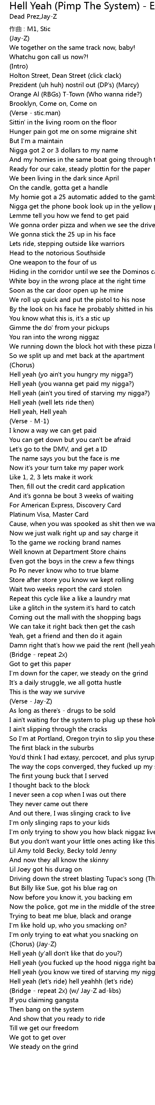 | Bridge repeat 2x w JayZ adlibs | |