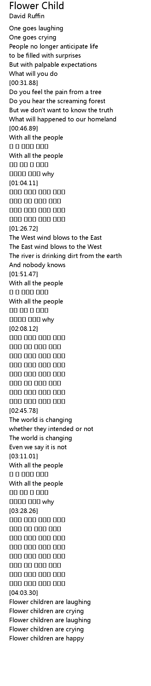 | [04:30.08] | Flower children are crying |