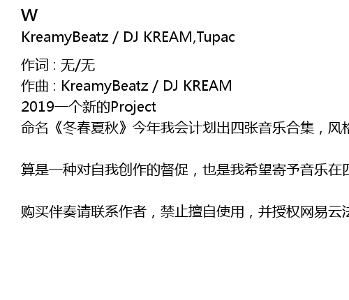 | 2019一个新的Project 命名《冬春夏秋》今年我会计划出四张音乐合集,风格不固定,可能会有Remix,可能会是伴奏集,也可能是一些随性的Groove。 | |