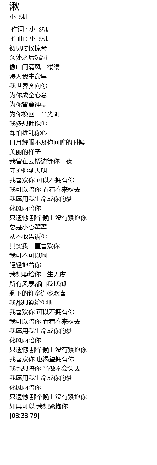 | [00:00.000] | 作词 : 小飞机 |