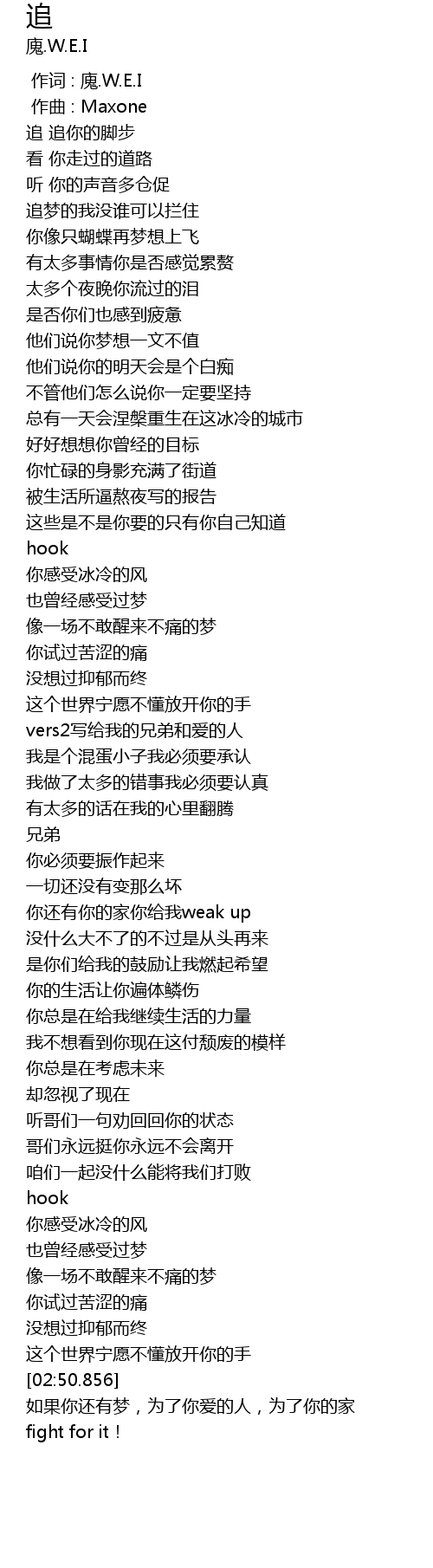 | [00:00.000] | 作词 : 廆.W.E.I |