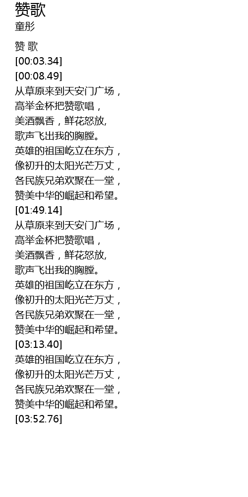 | [01:37.68] | 赞美中华的崛起和希望。 |