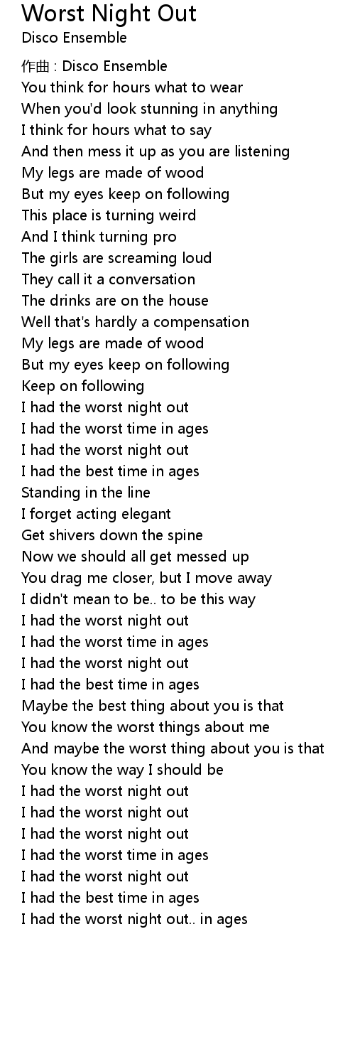 | 歌曲 | Worst Night Out |