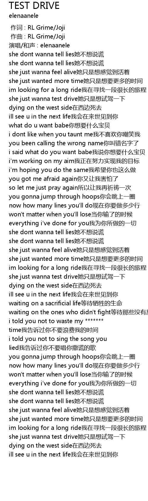 | [01:44.338] | she just wanna test drive她只是想试驾一下 |