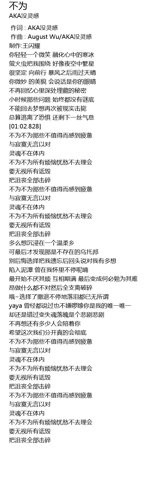 | [00:01.000] | 作曲 : August Wu/AKA没灵感 |