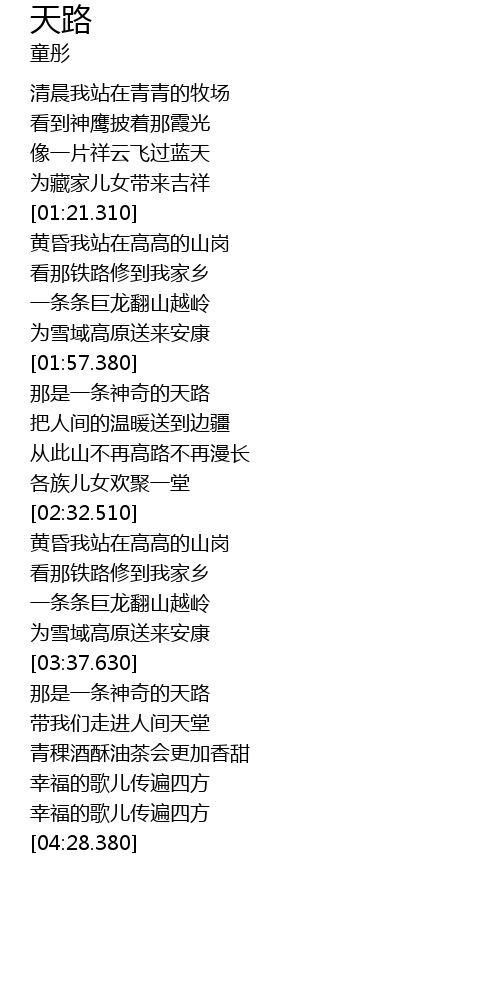 | [02:00.630] | 那是一条神奇的天路 |
