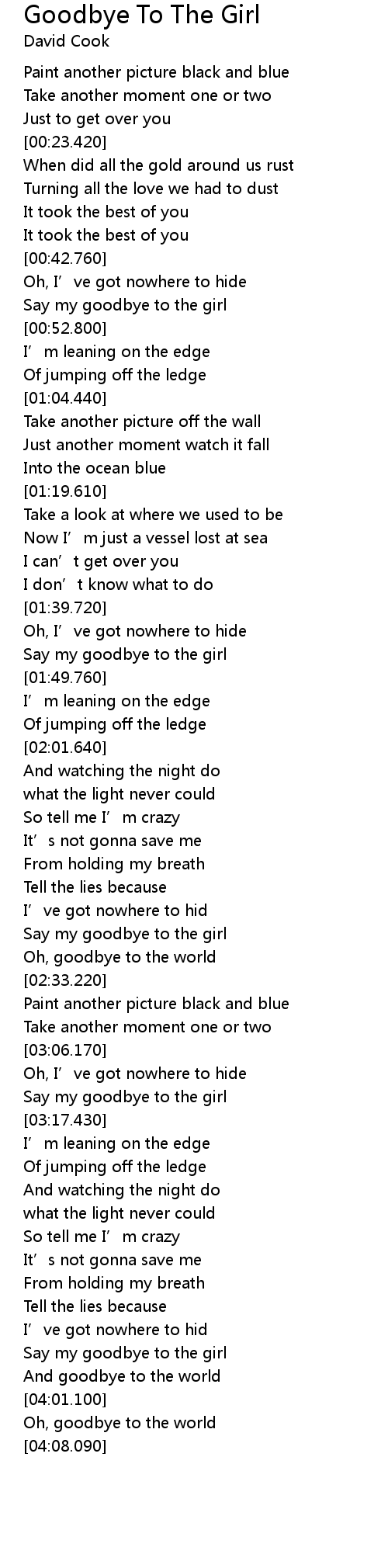 | [03:50.690] | Say my goodbye to the girl |