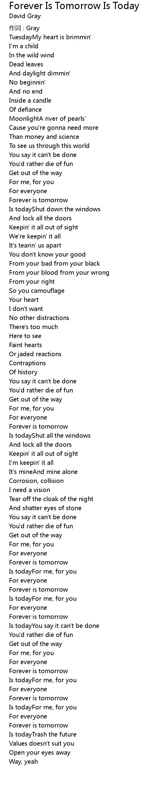 | 歌曲 | Forever Is Tomorrow Is Today |