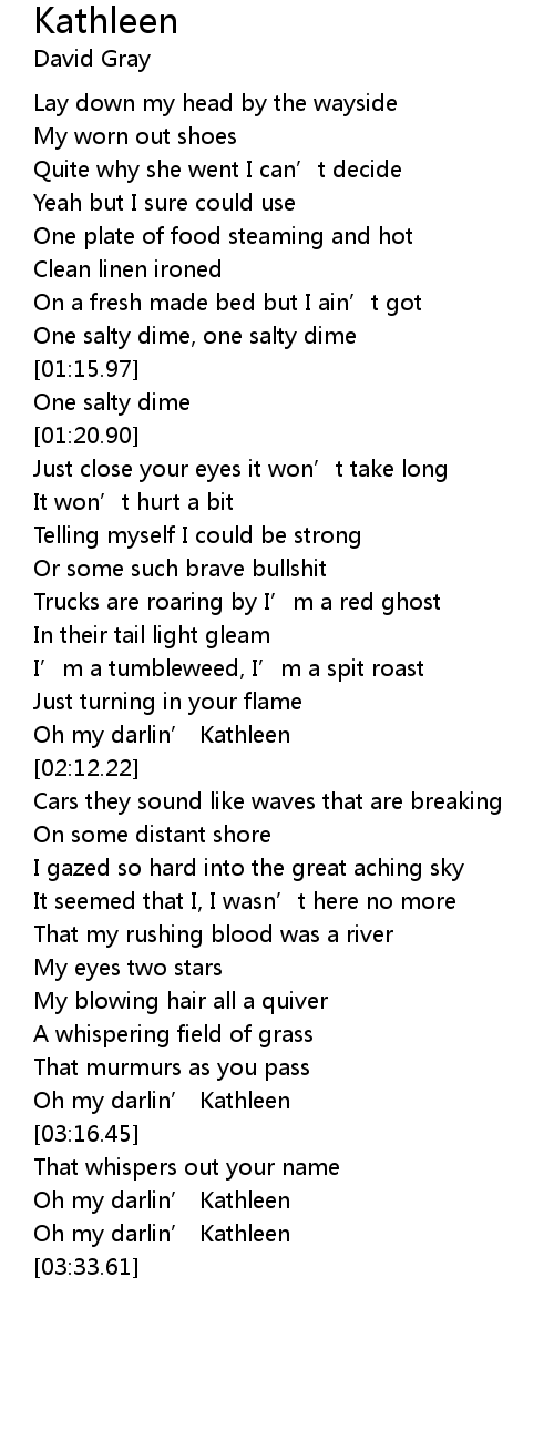 | [03:24.69] | Oh my darlin’ Kathleen |