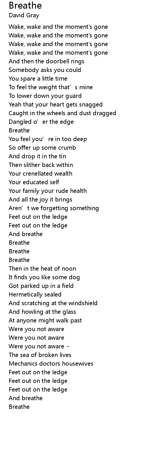 | [00:41.39] | Wake, wake and the moment' s gone |