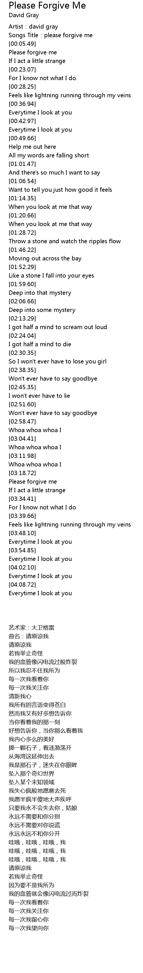 | [00:02.43] | Songs Title:please forgive me |