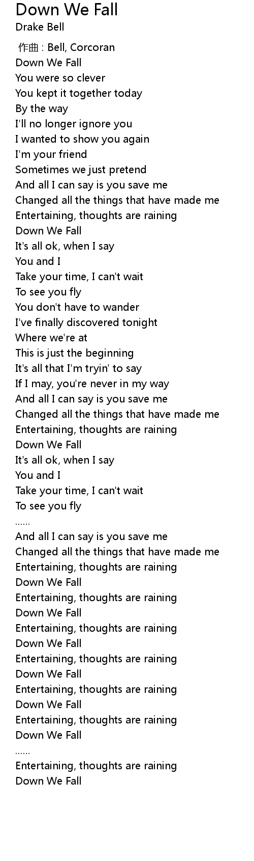 | 歌曲 | Down We Fall |