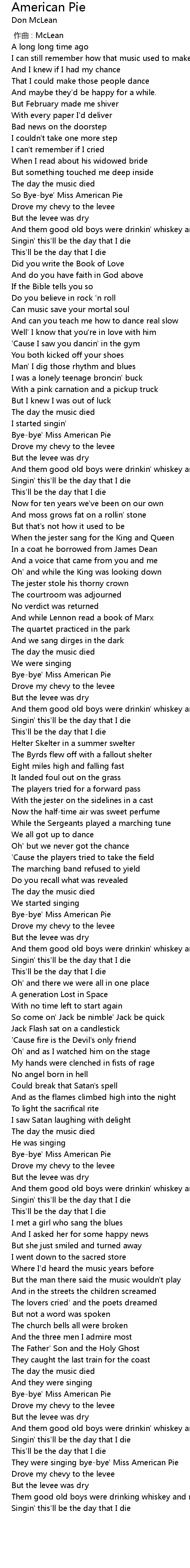 | [01:03.00] | So Bye-bye' Miss American Pie |