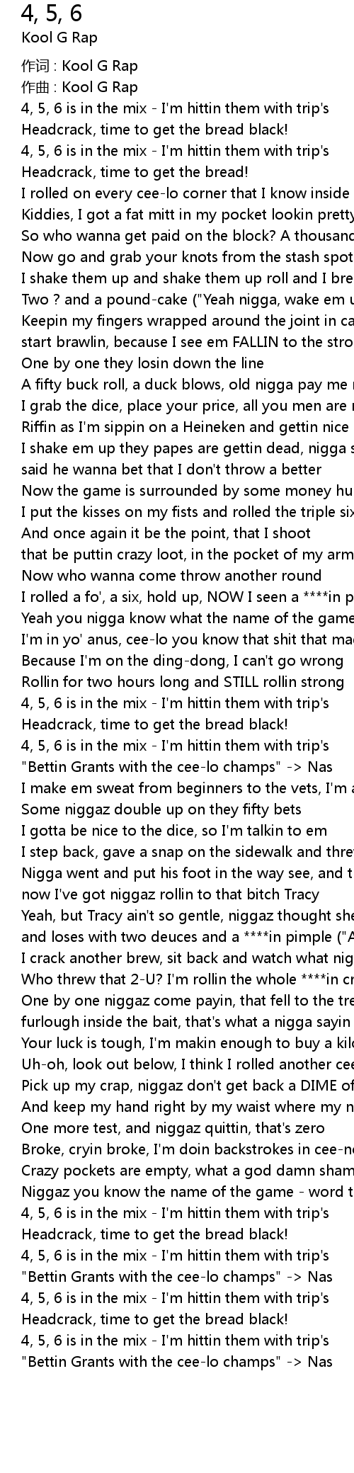 | 4, 5, 6 is in the mix I' m hittin them with trip' s | |