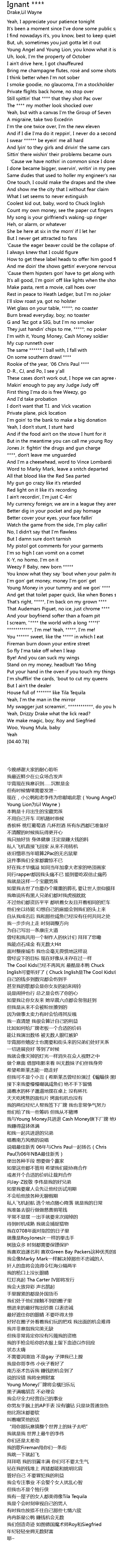 | [00:21.02] | 现在,小公鸭和老李伟为您献唱此歌(Young Angel为Drake Young Lion为Lil Wayne) |