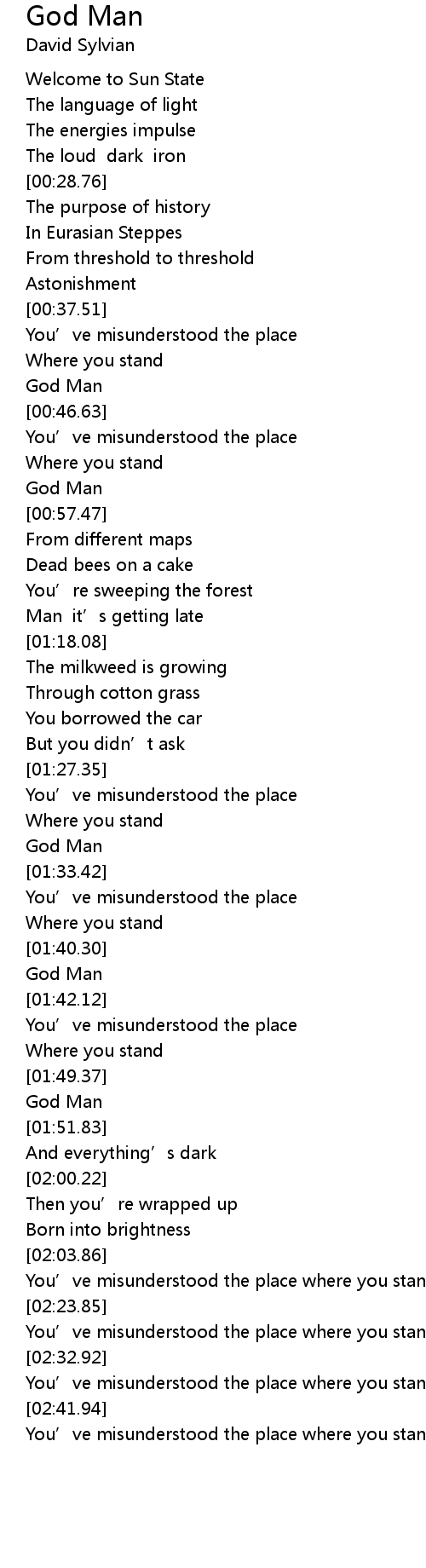 | [02:28.93] | You’ve misunderstood the place where you stand |