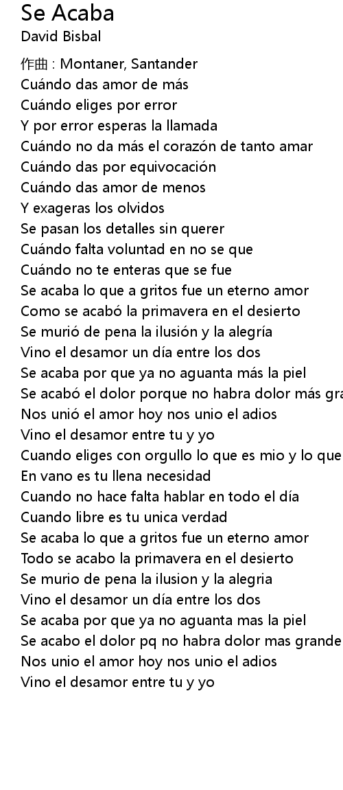 | 歌曲 | Se Acaba |