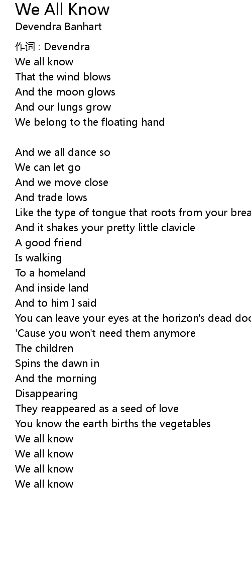 | 歌曲 | We All Know |