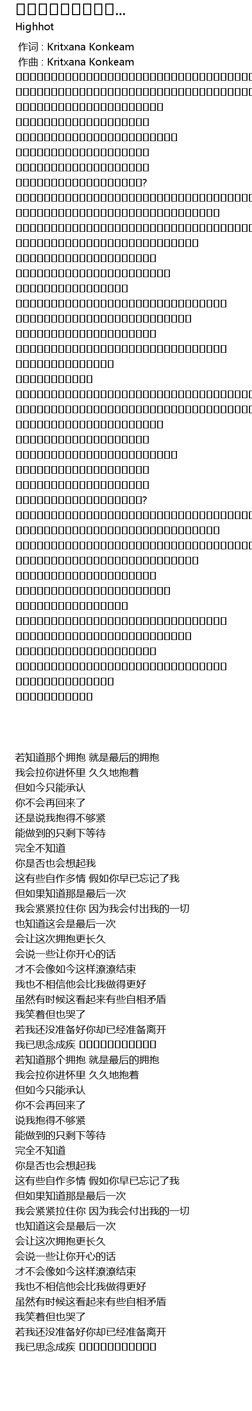| [00:16.43] | ถ้ารู้ว่ากอดนั้นมันจะเป็นกอดสุดท้าย |