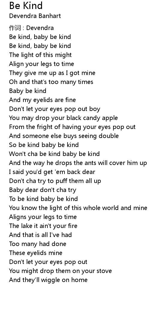 | Won' t cha be kind baby be kind | |