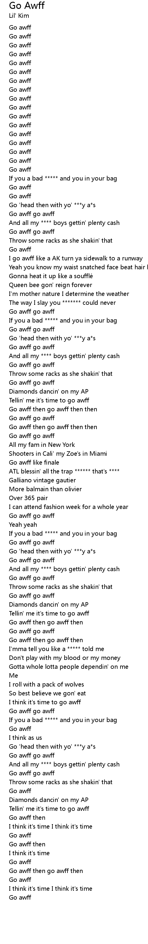 | [00:32.50] | Go awff |