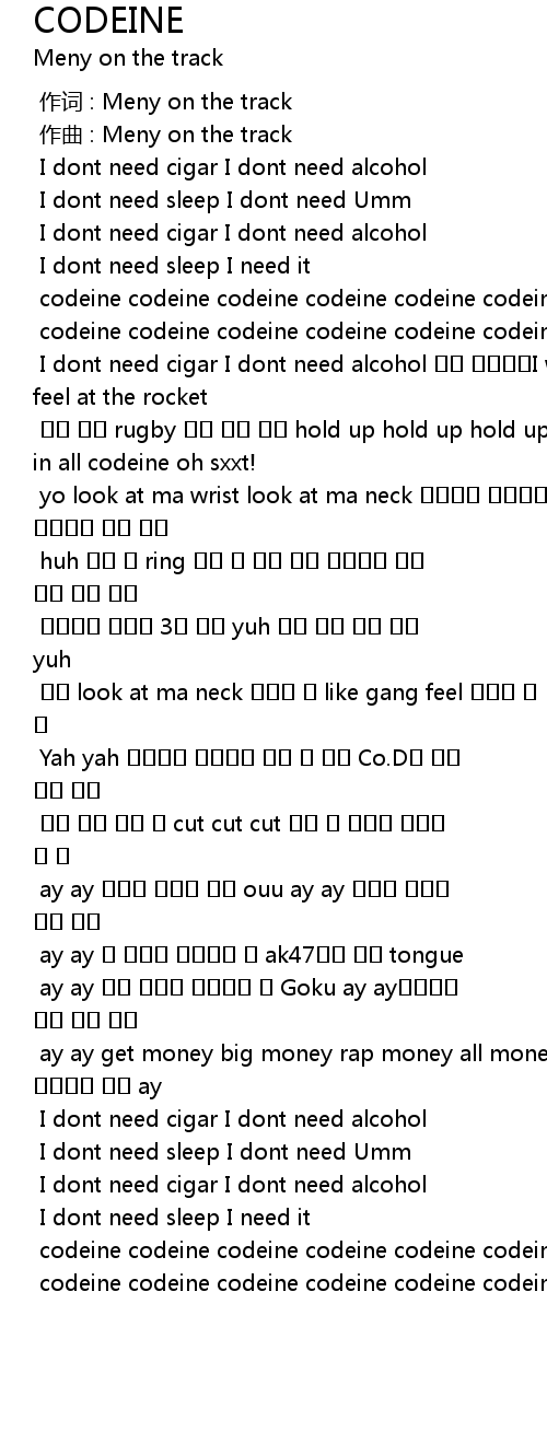 | [02:05.380] | codeine codeine codeine codeine codeine codeine yah |