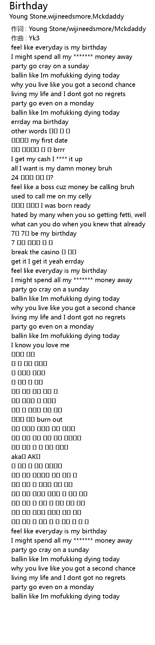 | [01:54.533] | 꺼져 나는 내 인생이 매일 생일 |