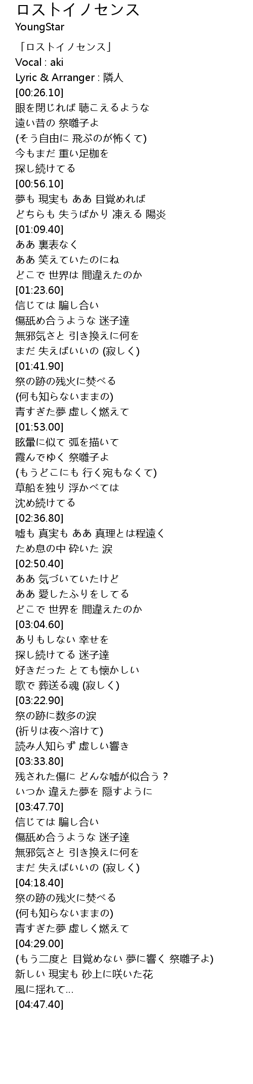 | [00:00.10] | 「ロストイノセンス」 |