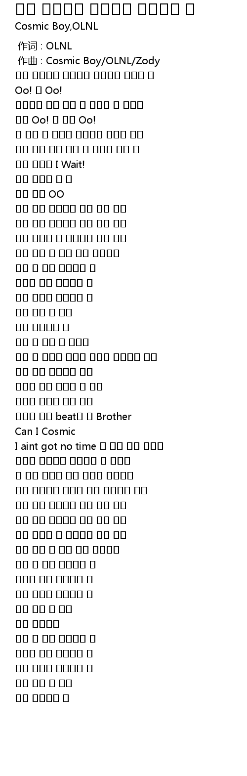 | [00:01.000] | zuò qǔ : Cosmic Boy OLNL Zody |