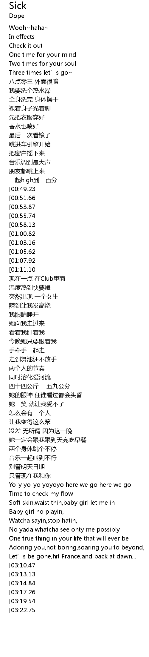 | [03:01.62] | No yada whatcha see onty me possibly |